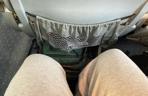Leg room on Norse is a lousy 32 inches (see below, and keep in mind that I'm only 5'3"), but that's no less than in the economy cabins of the airlines mentioned above. The seats, too, are the same size, at roughly 17 inches across. The plane is configured into rows of three on each side, plus four seats across in the middle and two aisles.